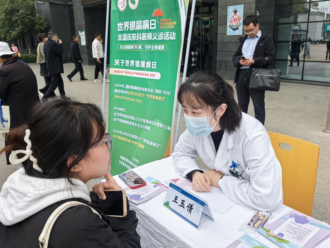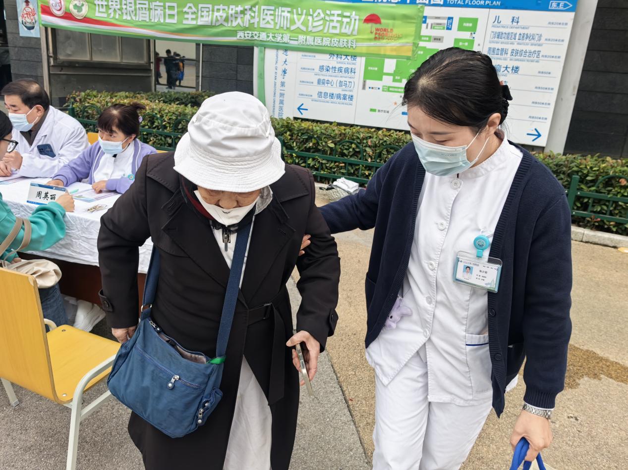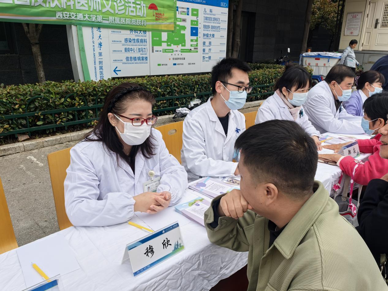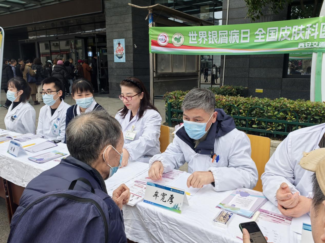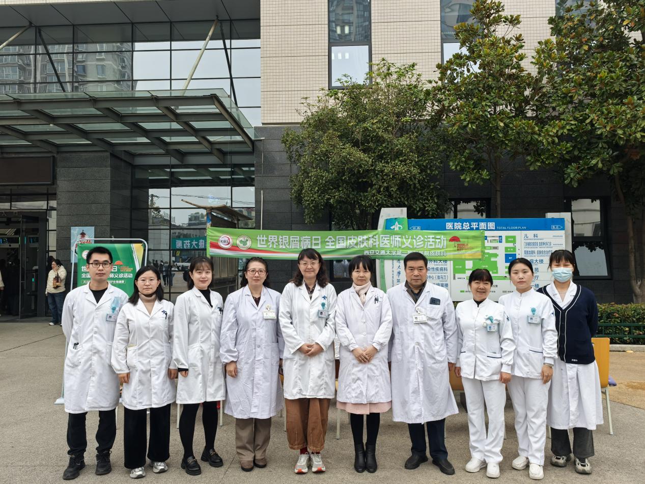 10 月 29 日是 “世界银屑病日”,为提高公众对银屑病的认知,帮助患者正确认识疾病、科学规范治疗,西安交通大学第一附属医院皮肤科在医院门诊楼前南广场开展了以 “关注银屑病(共)病,守护全身健康” 为主题的义诊活动,为广大银屑病患者及市民提供了免费的专业医疗服务,用实际行动传递关爱与温暖。