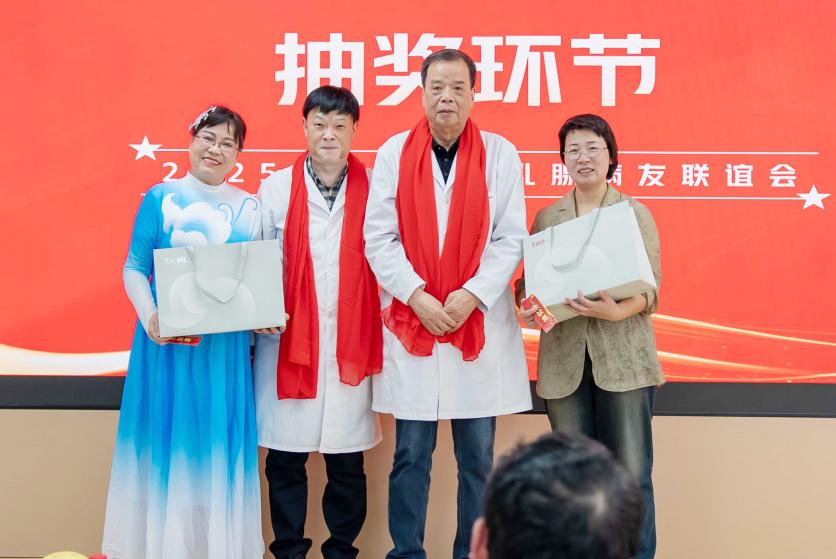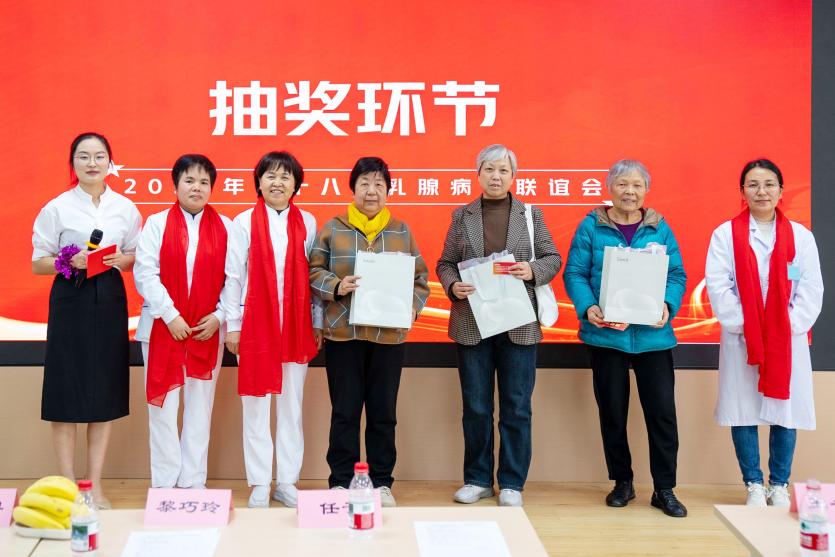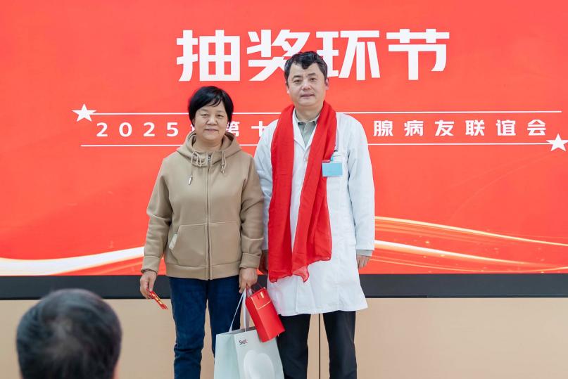 此次联谊会还设置了专家答疑和《幸运抽大奖》环节,让患者及与会人员“劳逸结合”,在欢快热烈的气氛中,与专家教授进行近距离沟通。由营养科杨雪亮教授及乳腺外科陈武科教授,分别从自身专业角度对患者提出的相关疾病管理问题,进行了详细精准的解答。喜悦还在传递,大家最期待的“抽奖环节”共产生6个奖项,三等奖3名,二等奖2名,一等奖1名,分别由任予主任、陈武科教授、郭萍利护士长等为获奖的朋友颁发奖品。