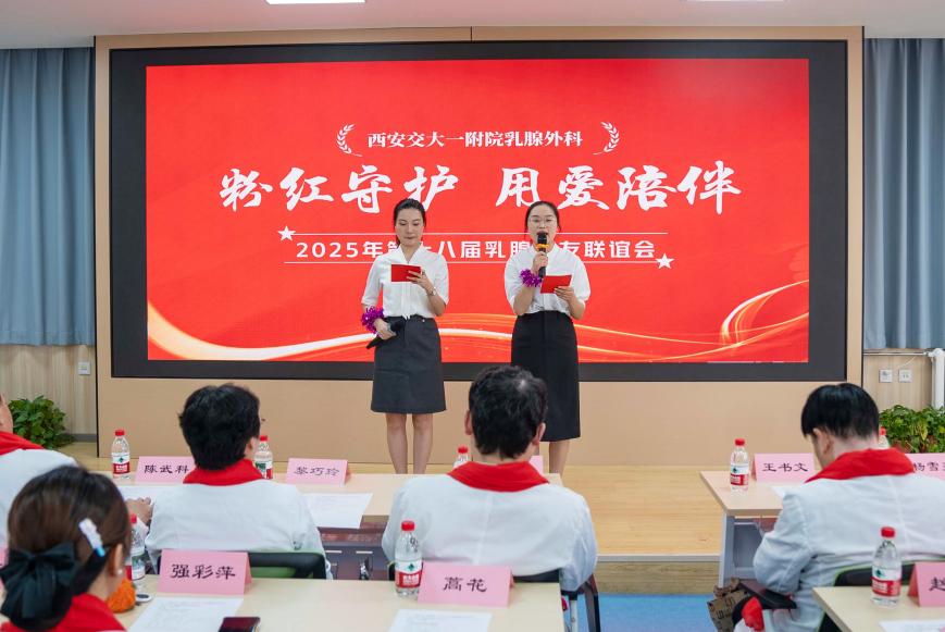 秋风拂叶,天空如洗,在充满诗意与魅力的十月,西安交通大学第一附属医院护理部及乳腺外科于2025年10月30日下午在南院区三楼会议室成功举办了“粉红守护 用爱陪伴”—第十八届乳腺病友联谊会,吸引了多位领导、专家教授、康复志愿者和众多患者的热情参与,共同探讨乳腺健康话题,并进行了一系列丰富多彩的活动。参会人数多达100余人,病友们热情高涨、座无虚席,现场气氛热烈而温馨。粉红丝带象征着女性的美丽,温柔和力量,十月是“世界乳腺癌防治月”,也是粉红丝带月,代表着社会各界对乳腺癌患者的关爱和支持,也把医护人员和每一位乳腺患者紧紧地连接在一起。