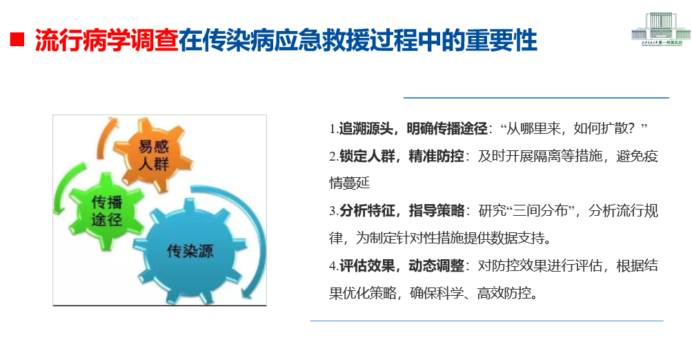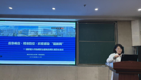 培训由医务部感染控制办公室副主任李倩主讲。她围绕国家重大传染病防治基地的建设背景与目标任务,结合我院在应急救援、监测预警、跨区域协作等方面的实践经验,系统阐释了流调工作在传染病防控中的核心作用。