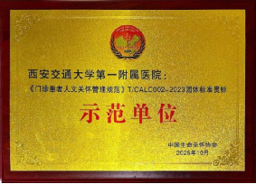 2025年10月31日,由中国生命关怀协会主办的全国“医院护理人文关怀标准化建设”培训班在湖北武汉召开。会上,中国生命关怀协会公布了《门诊患者人文关怀管理规范》团体标准贯标示范单位验收评审结果,我院门诊凭借卓越的护理人文关怀实践和扎实的工作基础,以优异的成绩通过评审,成为陕西省唯一一家《门诊患者人文关怀管理规范》团体标准贯标示范单位。