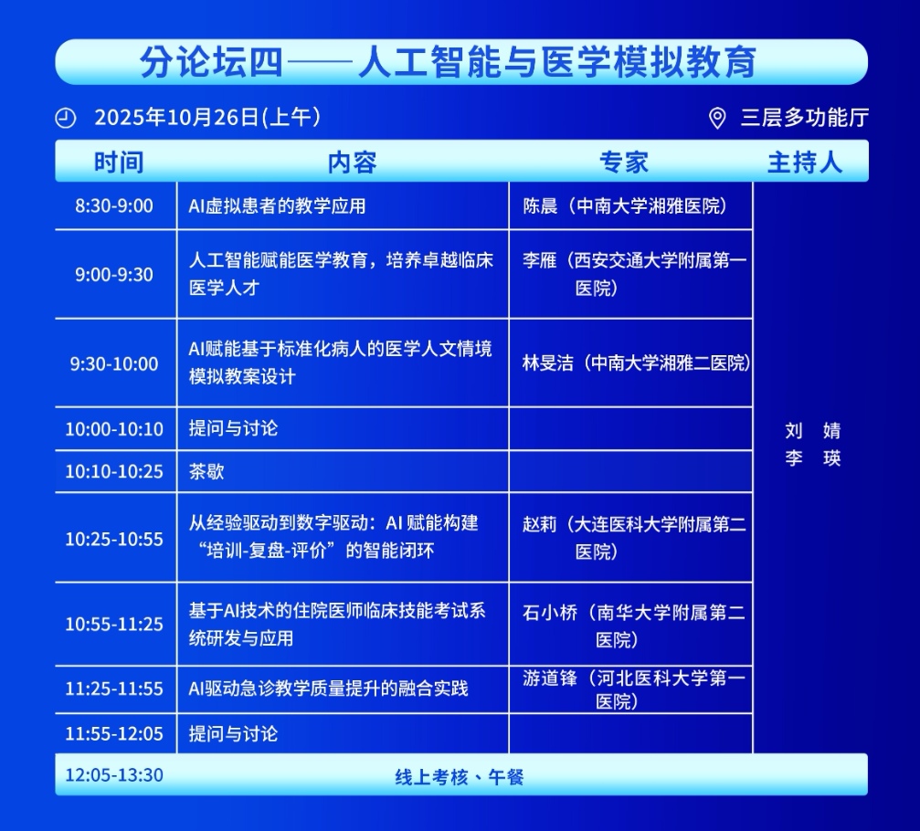此次参会不仅是我院临床教育教学数智化改革成果的集中展示,更是对标行业前沿、深化跨机构合作的关键契机。我院参会团队亦积极参与主论坛及其他分论坛研讨,聚焦“医学模拟课程整合与优化”“模拟中心高效运行管理”“操作性及情景临床技能带教实践创新”等关键内容,学习了国内医学模拟教育领域的前沿研究成果与创新案例,为后续工作开展提供了重要参考。