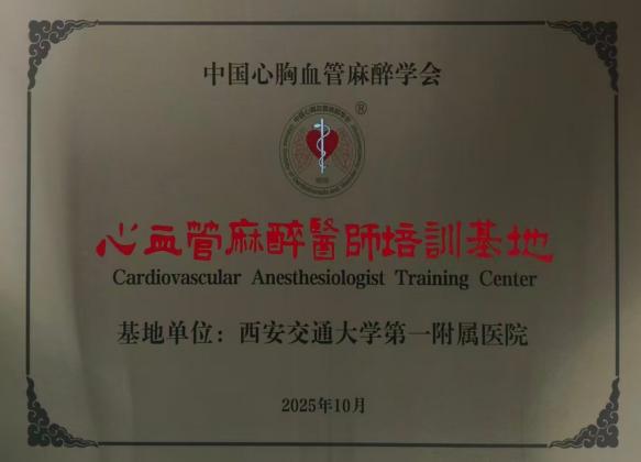 近日,经过中国心胸血管麻醉学会严格评审,西安交大一附院麻醉科凭借其在心血管麻醉领域的雄厚实力、卓越的临床技术与完善的教学体系,被正式授权为“第三批心血管麻醉医师专科培训基地”试点单位。这一资质的获得,标志着西安交大一附院麻醉科在心血管麻醉的临床、教学与科研水平已稳居国内先进行列,并将承担起为我国培养高素质、同质化心血管麻醉专科医师的重任。