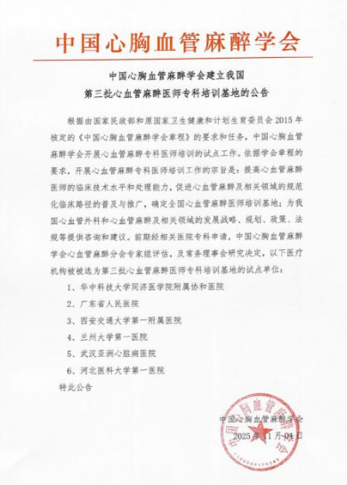 作为新晋的“国家级心血管麻醉医师培训基地”,科室将严格按照国家统一的教学大纲和考核标准,面向全国招收和培训心血管麻醉专科医师,通过系统、严格的训练,全面提升学员在复杂心血管手术麻醉管理、危重症监测与救治等方面的核心能力,为我国输送更多“医术精湛、医德高尚”的心血管麻醉后备人才。