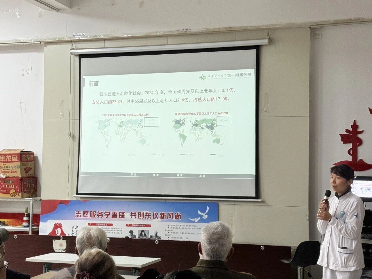 庞瑛护士长就《老年糖尿病低血糖的早期识别及处理》开展专题讲座,结合典型案例生动演示了预防与应急处理方法,提升了居民的自我保护能力。