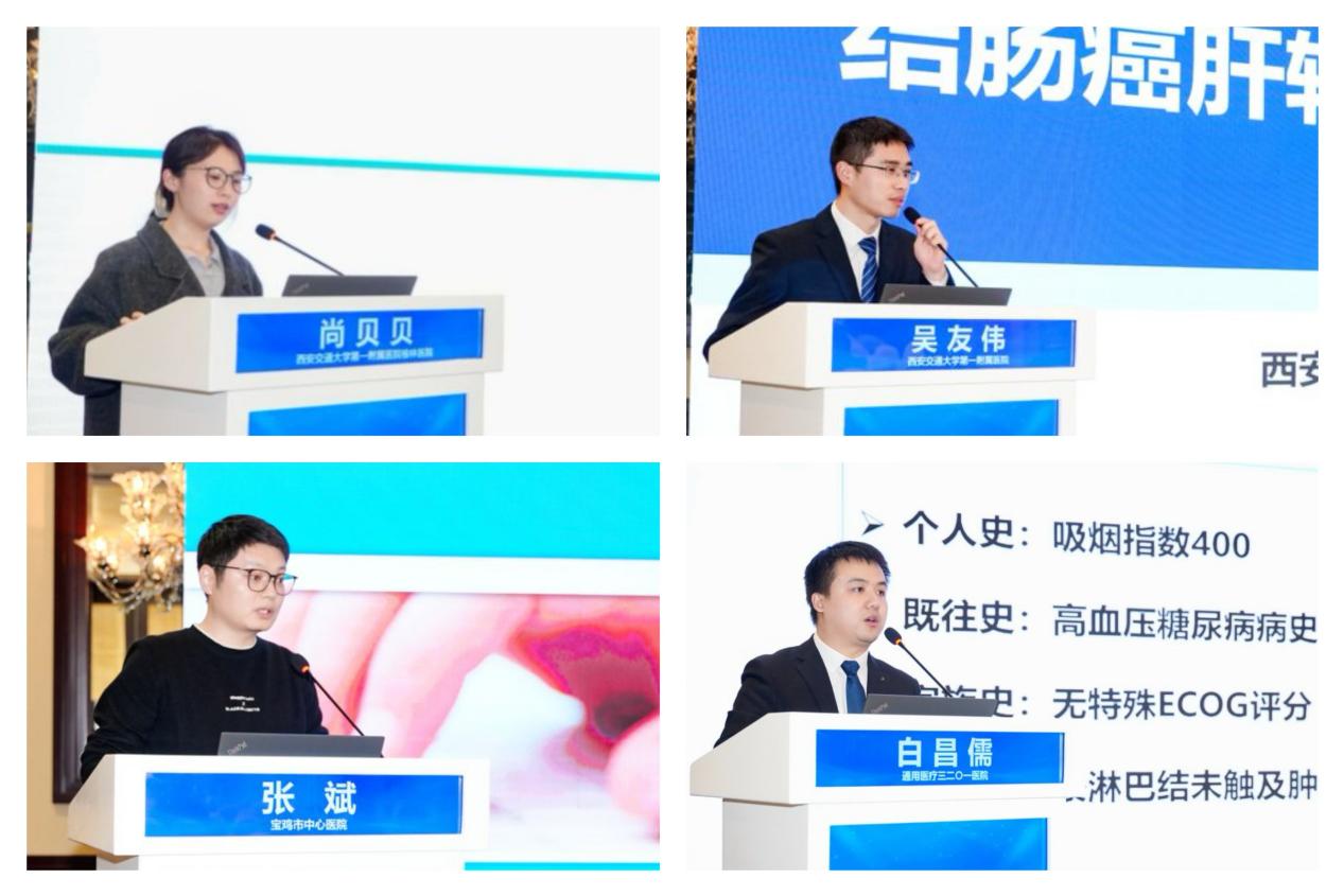 在紧随其后的学术会议环节,多位顶尖专家带来了精彩纷呈的主题报告。复旦大学附属肿瘤医院潘奇教授、陆军军医大学西南医院王小军教授、华中科技大学同济医学院附属同济医院张斌豪教授,西安交通大学第一附属医院焦敏教授、韩少山教授、陕西省人民医院刘屹教授等学者分别围绕“肠癌肝转移PSH理念在MIS中的应用”、“2025NCCN结肠癌指南更新解读”、“肠癌肝转移的手术切除联合射频消融的治疗”等前沿热点议题进行了深度分享,内容涵盖外科手术、消融治疗、转化治疗及内科方案选择等多个维度,展现了该领域的最新进展与未来方向。空军军医大学西京医院双剑博教授则就“外科医生肝脏肿瘤消融学习曲线”这一实用课题进行了阐述。上午的会议在宋涛教授的总结中告一段落。