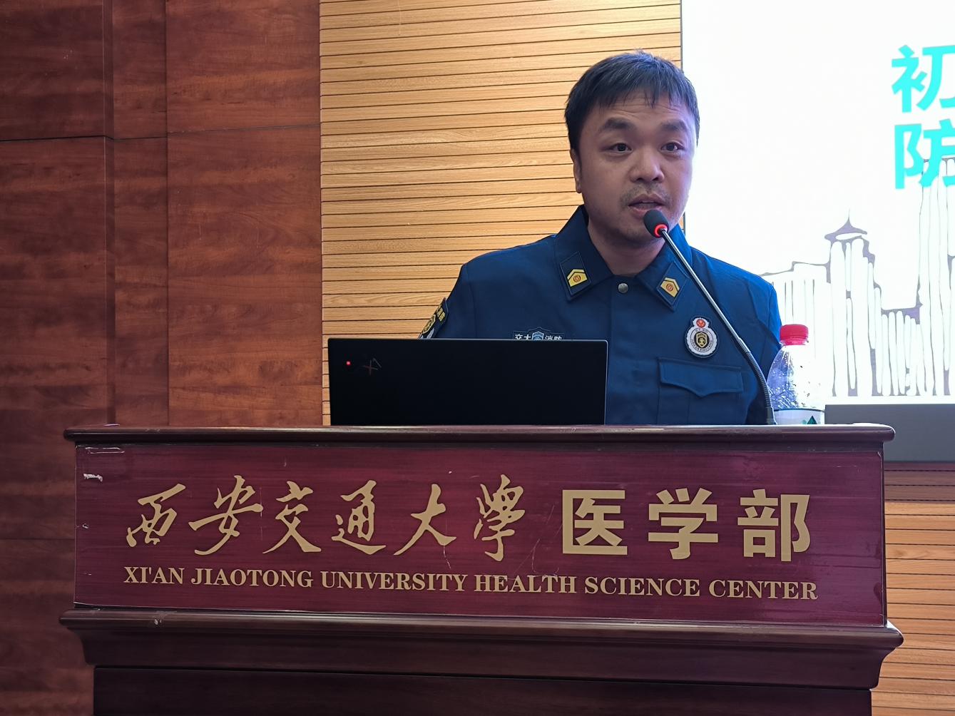 顾晓鸣老师作了题为“全民消防、生命至上”的专题报告,他针对学校重点场所风险特点、医学生职业环境面临的特殊消防安全挑战,解读了消防政策法规,结合校内外典型火灾案例剖析了火灾特性与消防安全责任体系,介绍了消防隐患识别排查及消防设施使用要点,讲解了风险防控与应急处置的具体操作方法,强调在消防安全中需掌握“一懂三会四个能力”,与参训同学进行了互动交流。