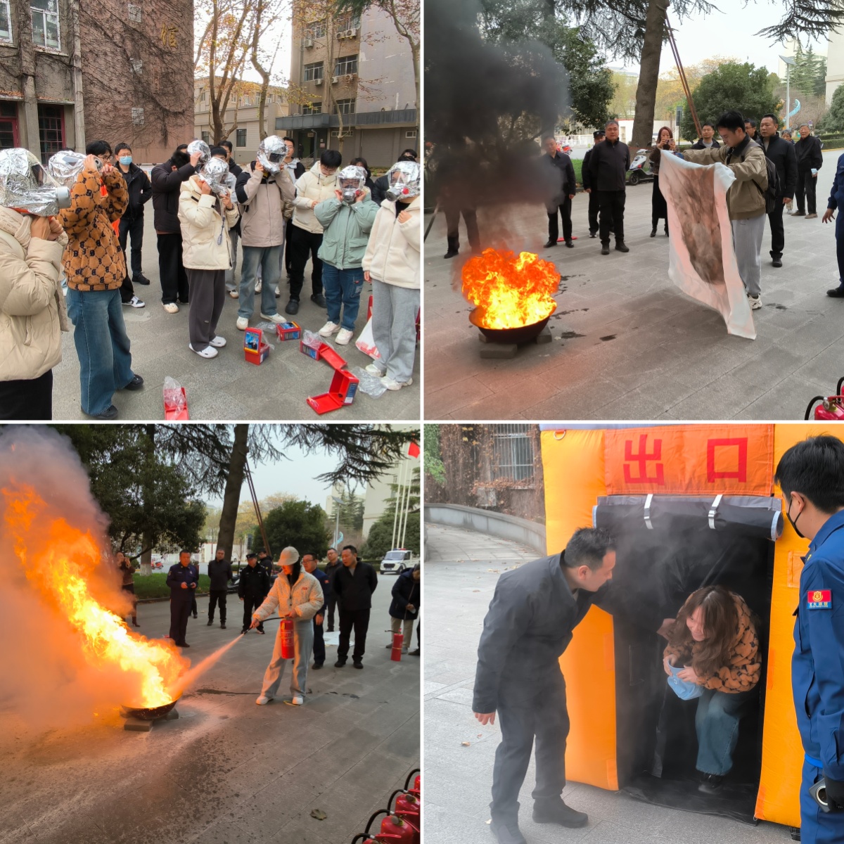 随后,全体参训人员在室外进行了消防技能实践演练。同学们在保卫部门老师的指导组织下,穿戴一次性防护面罩,使用灭火毯和灭火器进行现场灭火操作,进入模拟烟雾逃生体验馆感受火场场景,识别安全出口标志并限时逃生。