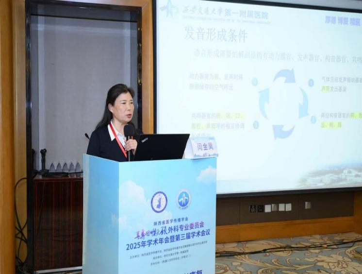 学术交流环节邀请我科白艳霞副主任担任主持。本次学习班紧扣“喉癌围术期康复”主线,课程设置全面覆盖全周期康复关键环节。由西安交通大学医学院第一附属医院耳鼻咽喉头颈外科张少强主任全面解析《全喉切除术后发音重建》,详细讲解喉癌手术相关术后发音功能康复的方式选择与效果评估;西安交通大学医学院第一附属医院耳鼻咽喉头颈外科赵瑞敏医师图文并茂的分享了《喉部不同手术方式对患者吞咽功能的影响及康复锻炼实践》,探讨手术方式不同与术后吞咽障碍的关联及吞咽功能康复优化策略;西安交通大学医学院第一附属医院耳鼻咽喉头颈外科闫金凤护士长讲解《全喉切除术后患者语音康复研究进展》,梳理喉癌术后言语康复的方式方法,并着重对食管发音康复训练步骤进行讲解演示。