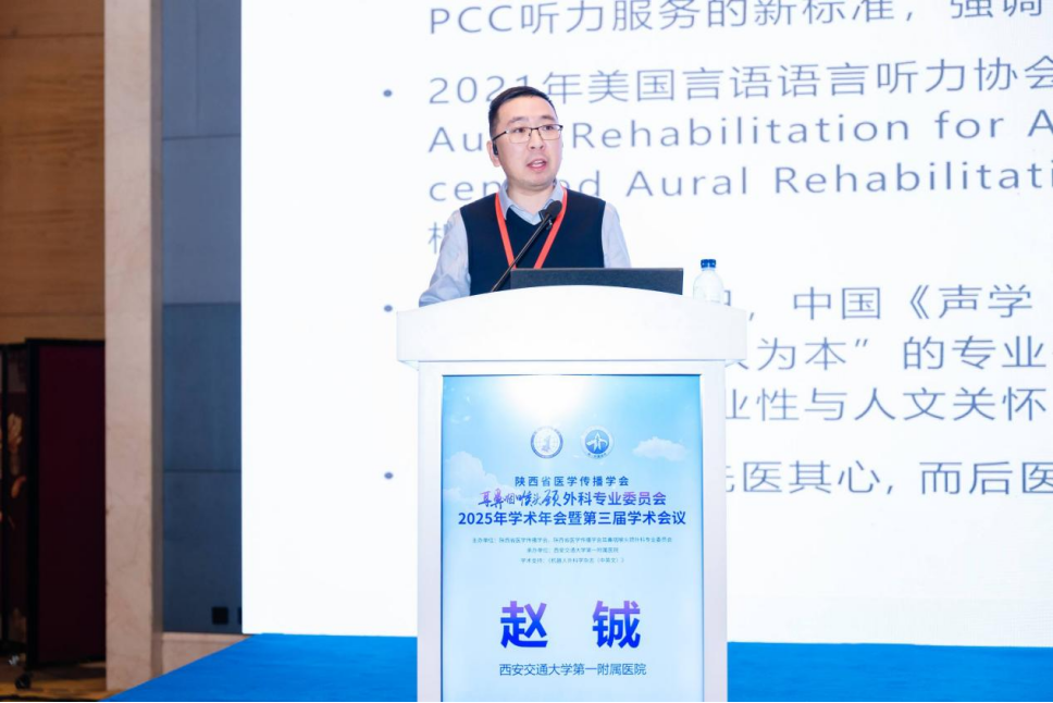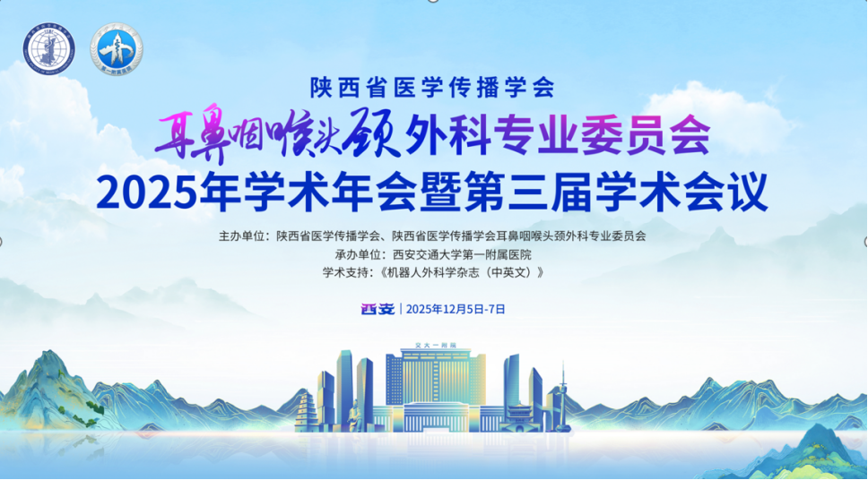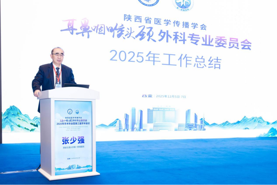冬韵渐浓,暖意相聚。2025年12月5日至7日,由陕西省医学传播学会、陕西省医学传播学会耳鼻咽喉头颈外科专业委员会主办,西安交通大学第一附属医院承办的陕西省医学传播学会耳鼻咽喉头颈外科专业委员会2025年学术年会暨第三届学术会议在西安顺利召开。西安交通大学第一附属医院党委副书记冯广林,陕西省医学传播学会副会长左毅,中国中西医结合学会耳鼻咽喉头颈外科专委会主任委员、复旦大学附属眼耳鼻喉科医院张天宇教授,陕西省医学传播学会耳鼻咽喉头颈外科专业委员会主任委员、西安交通大学第一附属医院耳鼻咽喉头颈外科主任张少强教授,陕西省人民医院耳鼻咽喉头颈外科刘晖教授,西安市耳鼻咽喉头颈外科质控中心主任、红会医院龚龙岗教授,西安医学会耳鼻咽喉头颈外科专委会主任委员、西安市人民医院(西安市第四医院)罗家胜教授,西安交通大学第一附属医院杨茜教授等领导、专家及专委会智库专家、副主委、常委和全体委员300余人出席本次大会,本次学术年会开幕式由陕西省电视台吴军主持。