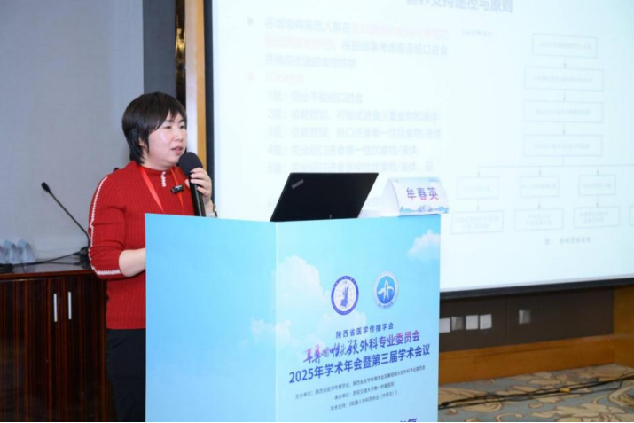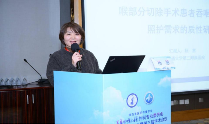 护理分会场举办了《喉癌围术期患者康复新进展学习班》,来自省内外共计百余名学员报名参会,由闫金凤护士长担任主持。邀请西安交通大学第一附属医院护理部李洁琼主任致辞。并邀请了西安交通大学第一附属医院张少强教授、西安交通大学第一附属医院闫金凤护士长、西安交通大学第一附属医院赵瑞敏医生、西安交通大学第一附属医院牟春英护士长、西安交通大学顾炜教授、西安交通大学第二附属医院杨慧教授、空军军医大学西京医院董艳护士长、西安交通大学第一附属医院赵蓉、杨婷、周翠萍主管护理师等专家围绕《全喉切除术后发音重建》《喉部不同手术方式对患者吞咽功能的影响及康复锻炼实践》《吞咽障碍患者的肠内营养规范化护理》《全喉切除术后患者语言康复研究进展》《护理科研技巧》《喉切除术后吞咽相关照护需求的质性研究》《喉癌患者的延续性护理管理》《围手术期营养管理对喉癌术后患者快速康复的影响》《基于MDT协同构建喉癌术后吞咽障碍患者营养管理》《基于临床护理路径(CNP)标准化框架全喉切除患者全周期护理》《发音康复+气管切开工作坊》等主题展开精彩的讲解,分享了最新的临床经验、科研成果与发展思考。现场讲授交流互动,学习氛围热烈。