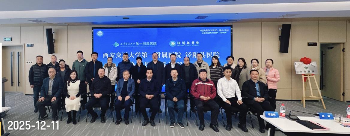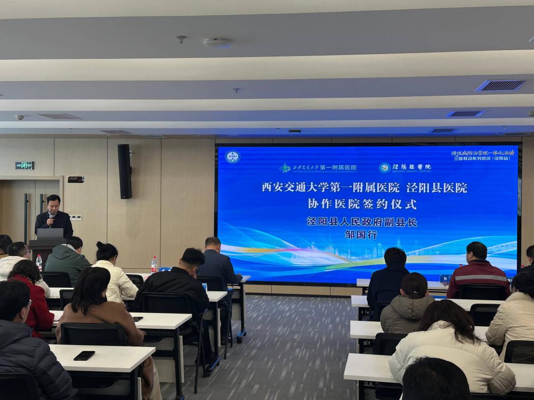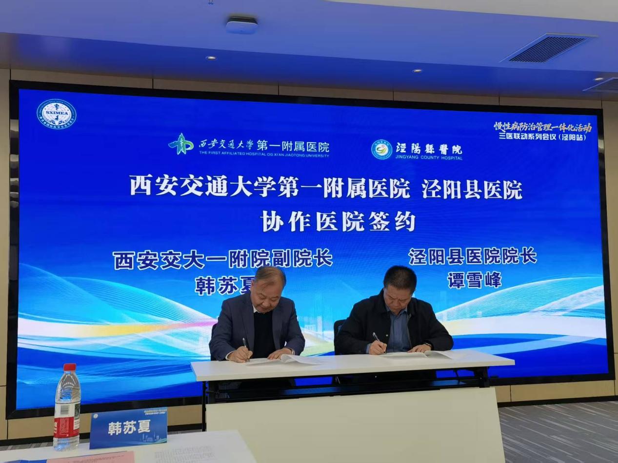 12月11日下午,西安交通大学第一附属医院与泾阳县医院正式签署《协作协议》并举行揭牌仪式。泾阳县人民政府副县长邹国行,县卫健局党委书记、局长闫政,我院韩苏夏副院长,事业发展与校友工作部雷磊副部长,以及泾阳县医院领导班子、相关行政职能部门负责人出席会议。