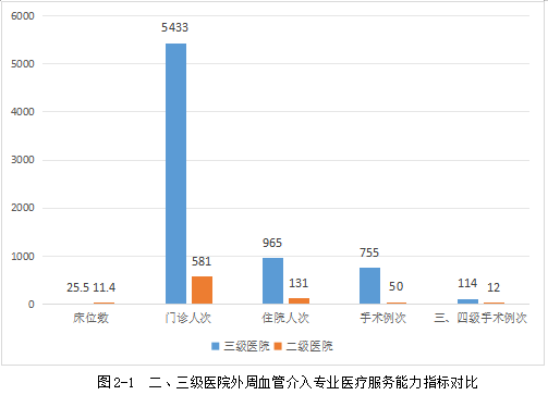 1.服务能力断层明显:三级医院院均年手术量达755例,而二级医院仅为50例;三四级手术量三级医院院均114例,二级医院仅12例。42家具备资质的医院中,仅66.7%独立设置血管介入专科,52.3%拥有心血管外科支持团队。