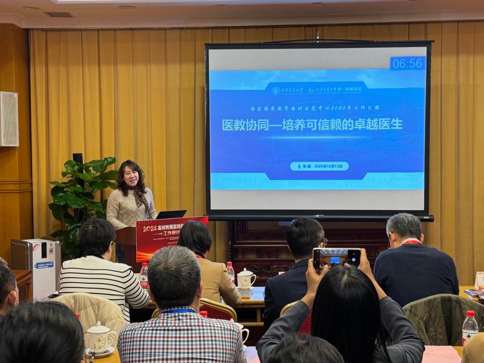会上,全国首批国家临床教学培训示范中心进行了年度建设工作总结汇报。受李小鹏副院长的委托,教学部李雁部长代表我院汇报了2025年度建设情况。汇报围绕中心概况、2025年重点建设成果、存在问题及下步计划三大板块展开,系统展示了我院一年来在本科临床实践教学改革创新、研究生和住专培质量提升、继续医学教育体系完善等方面的工作成效,明确提出今后我院将以教育家精神为引领,以国家医学中心建设为牵引,深化研教医协同创新,强化示范中心内涵建设,提升临床实践教学质量,充分发挥引领、辐射与带动作用,为推动区域乃至全国临床实践教育改革发展贡献力量。