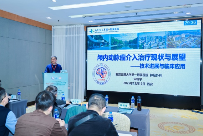 12月12日,大会举办了"国家863计划项目延展培训——西安交通大学第一附属医院颅内动脉瘤血管内治疗新进展陆港高级培训班",共面向全省各地区基层医院共招收了学员30人。我院神经外科专家宋锦宁、徐高峰、白晓斌、祁磊、杜昌旺、王佳、马旭东、李嘉熙分别以《颅内动脉瘤介入治疗现状与展望:技术进展与临床应用》、《颅内动脉瘤介入治疗术前评估与分支血管保护技术要点解析》、《颅内动脉瘤介入通路搭建技术与常见难点处理》、《瘤内扰流装置WEB在颅内动脉瘤血管内治疗的技术要点与应用》、《椎动脉夹层的血管内治疗技术与进展》、《颅内动脉瘤介入栓塞微导管塑形与到位技术解析》、《常用密网支架的性能比较与临床选择:从核心参数到病例实践》、《颅内动脉瘤介入治疗并发症的防范与处理》为题,围绕颅内动脉瘤介入治疗的术前评估、技术操作、装置应用、并发症防治等核心议题展开了深入讲解、答疑、讨论,为培训班学员提供了宝贵的学习机会。