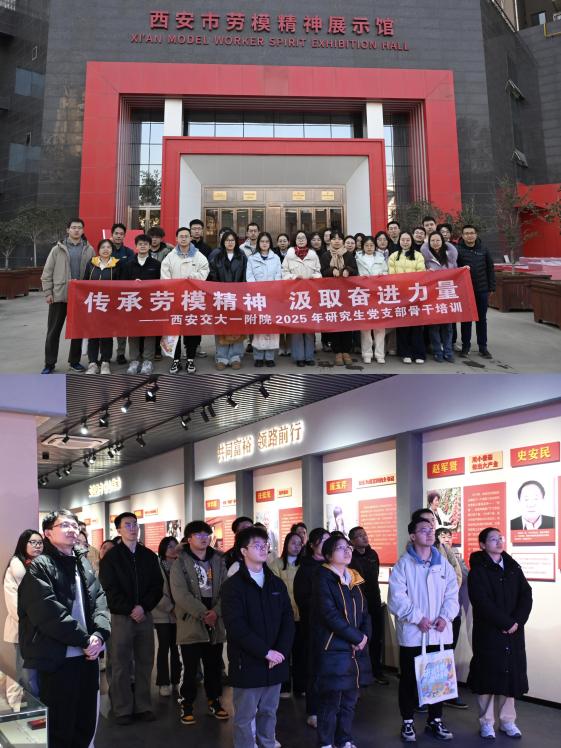12月16日下午,培训班组织2025级新生党支部骨干前往西安市劳模精神展示馆参观见学。同学们通过观看历史图片、实物陈列和影像资料,深入学习了不同时期劳动模范的感人事迹,深刻体悟了劳动模范爱岗敬业、艰苦奋斗、甘于奉献的精神风貌,进一步坚定了投身医学事业、服务人民健康的理想信念。