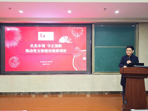 杨夫腾老师以《扎实本领 守正创新 推动党支部建设提质增效》为题,围绕党的组织体系建设、党务工作政策要求与制度依据、基层党建工作重点任务等内容,强调在党组织生活中要坚持守正创新,将原则性与灵活性有机统一,不断提升基层党支部标准化规范化建设水平。
