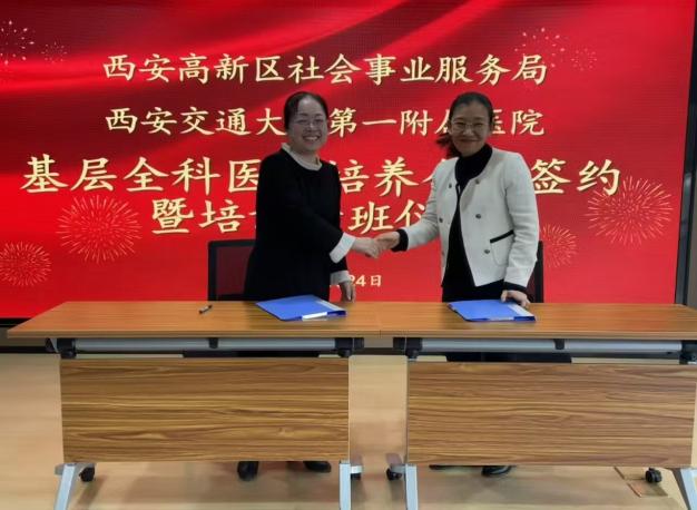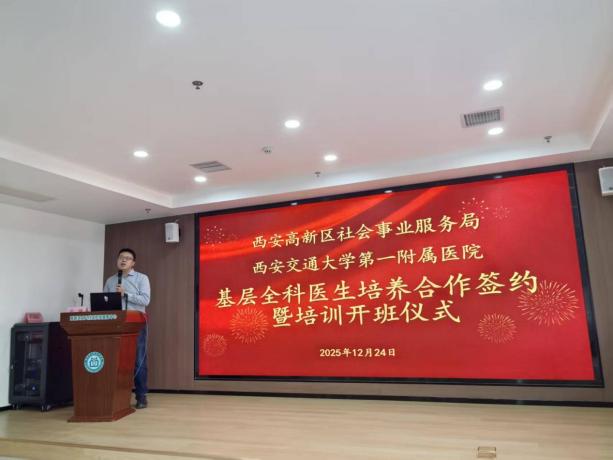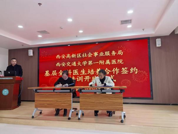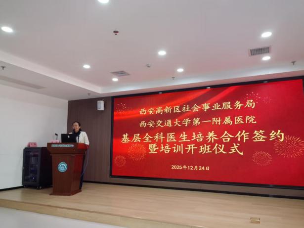 2025年12月24日下午,西安高新区社会事业服务局与西安交通大学第一附属医院在西安高新区丈八社区卫生服务中心六楼培训中心,隆重举行基层全科医生培养合作签约暨培训开班仪式。此次活动标志着区域医联体建设与基层卫生人才培养进入深度融合、协同发展的新阶段。