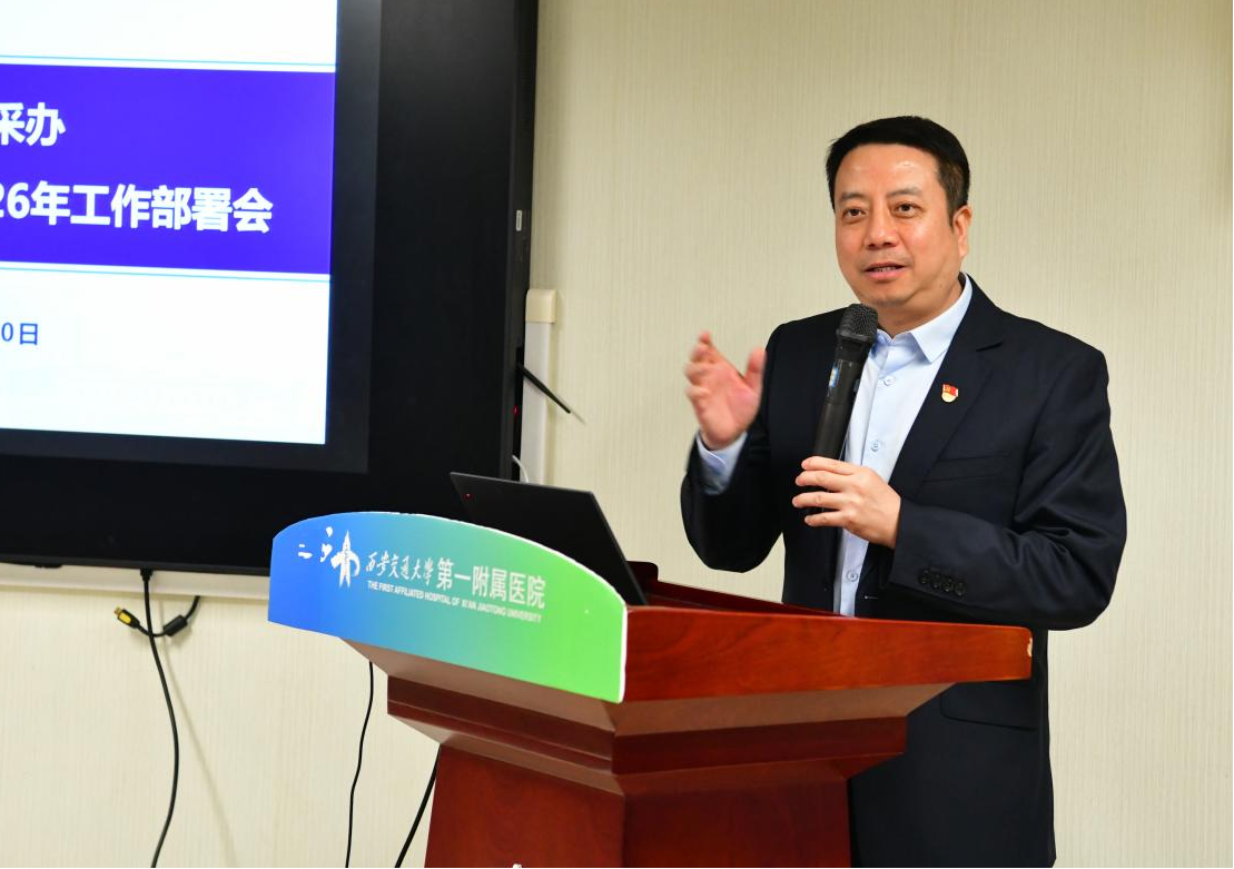 李小鹏副院长作总结讲话。他首先对教学部、招采办2025年工作成效给予充分肯定,指出两部门在全体干部职工的共同努力下顺利完成了医院重点工作任务。他指出,成绩已是过去,“十五五”是新起点,面对国家医学中心建设的新形势新要求,必须牢固树立“招采围着临床转、教学围着师生转、全院围着病人转”的核心工作理念,以精准服务提升效能,推动教学管理和招标采供工作高质量发展。他要求,全体干部职工要强化学习意识,紧跟行业发展趋势,在学习中创新,在创新中学习。他强调,要坚守安全底线,延续2025年“在平稳安全中推进”的工作基调,重视廉洁与保密工作,推动党建与业务深度融合,营造和谐共进的工作氛围。