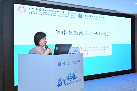 本次会议特别关注了器官捐献和供体来源感染的管理问题,该环节由我院丁晨光教授主持,四川省人民医院潘灵爱教授介绍了移植器官供体维护及供体感染处理相关内容。器官捐献工作的快速推进在拯救大量器官功能衰竭患者生命的同时,也带来了DDI这一重大挑战。因此,规范移植前及移植术后高危 DDI 人群的诊断与治疗至关重要。