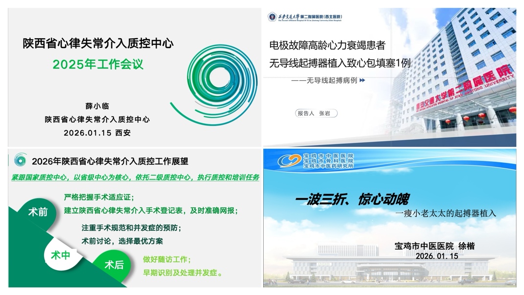 1月15日,陕西省2025年心律失常介入质控会通过线上平台顺利召开。本次会议由西安交通大学第一附属医院薛小临教授、梁潇教授共同主持,全省各地医疗机构的心律失常介入质控负责人齐聚云端,围绕2025年陕西省心律失常介入质控工作成效、数据统计、并发症防控及2026年工作计划等核心内容展开深入交流,为全省心律失常介入诊疗质量的规范化、精准化发展凝聚共识。