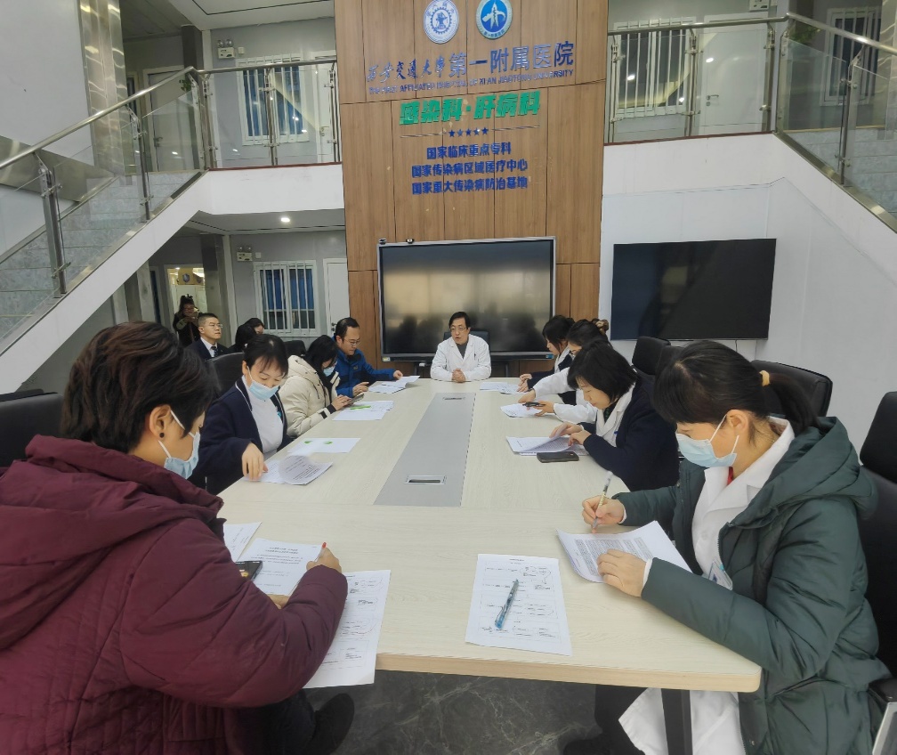 为全面提升我院应对尼帕病毒病的快速响应与科学处置能力,进一步强化多部门协同作战效能,规范防控处置流程、提升处置效率,在院领导的高效部署、统筹调度下,1月29日,由医务部感染控制办公室牵头,联合检验科、感染性疾病科、总务部及部分临床科室,精心谋划、有序开展了一场全流程闭环、贴合实战需求的尼帕病毒病疑似病例应急处置演练。演练环节由医务部副部长兼感染控制办公室主任叶峰主持。