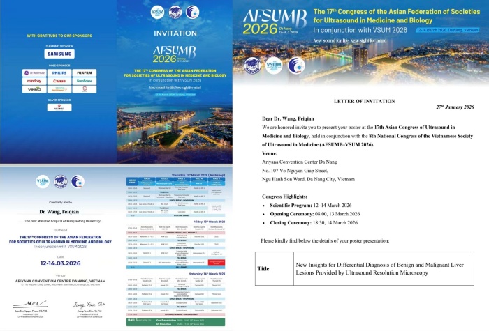 图3 示个案收录于《Diagnostics》期刊 图4 该病例入选亚洲超声医学与生物学联合会 (AFSUMB)高端国际会议壁报