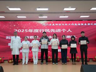 韩建峰副院长在随后的发言中深情回顾了神经内科从港务区起步到如今“三区并举”的跨越历程。他指出,这一年科室在规模拓展、服务提升与人才培养上均迈出扎实步伐,这些成绩凝聚着每一位医护人员的汗水与智慧,也离不开医院各部门的协同支持。面向未来,科室仍需在医疗技术深化、科研创新突破和人才梯队建设上持续发力,共同谱写神经内科高质量发展新篇章。