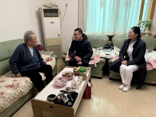 2月10日,院工会韩菊主席一行来到孙学先、刘继汉两位离休干部家中,带去院领导班子的新春问候,详细了解几位老前辈的身体情况,家里有无困难,介绍了医院2025年工作成效和2026年开展的核心工作。她说,老前辈为新中国解放事业和改革开放作出贡献,为医院的发展呕心沥血,也见证了医院的各个发展阶段和取得的成绩,医院也在努力创造条件使老前辈们生活的更幸福,他衷心祝愿老同志们健康长寿,阖家幸福。从2025年11月份开始,韩菊主席带领离退休办、各相关临床科室负责人不间断地一起走访、看望离退休老专家、老教授,探望过程中,韩菊主席就医院十五五规划、国家医学中心建设及院庆70周年活动听取老同志的意见建议。
