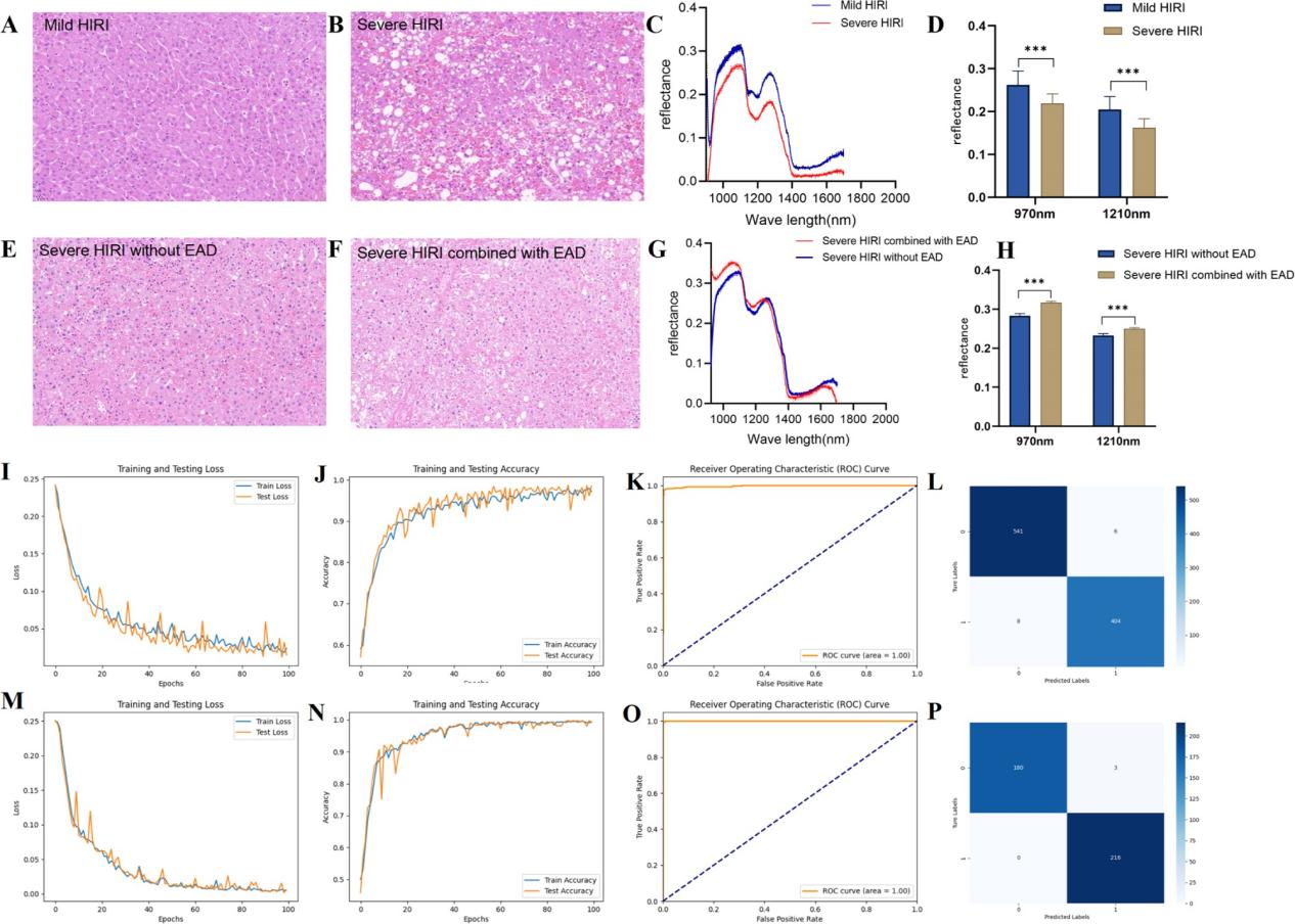 同时,团队通过回顾性临床队列研究,证实了该系统不仅能准确区分供肝轻、重度缺血再灌注病理损伤程度,更能在病理表现相似的情况下,通过光谱差异成功预测患者是否会发生早期移植物功能障碍,为术后管理提供了前瞻性依据。