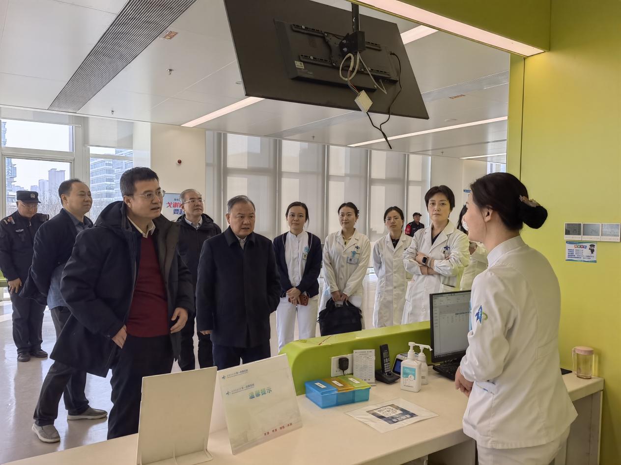 院领导一行先后深入肿瘤治疗中心、急诊抢救室、急诊病房、EICU、留观病房、胸痛中心、儿科、健康医学科、超声医学科、内镜中心、ICU、CCU、消毒供应中心等区域,通过现场查看、交流询问等方式,详细了解节日期间患者收治、人员配置、值班值守、设备运维、救治流程、诊疗成效及学科特色发展等情况。每到一处,都与一线医护人员亲切交流,仔细询问大家的工作强度、生活保障等情况,对医护人员在新春佳节坚守岗位、守护群众健康的奉献精神给予充分肯定和高度赞扬。同时叮嘱大家要在全力保障医疗服务的同时,合理调配休息时间,始终以饱满的精神状态、精湛的医疗技术为患者提供优质、高效、安全的医疗服务。