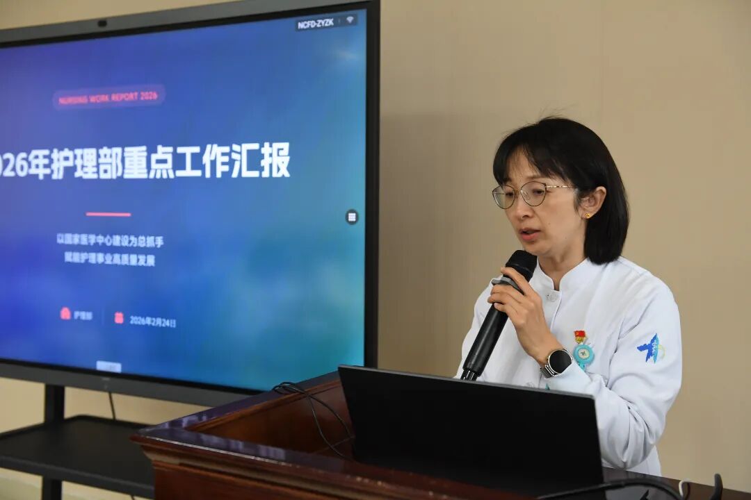 护理部李洁琼主任就2026年度护理工作整体规划进行专题汇报,汇报内容围绕护理质量管理、人才培养、学科建设、信息化推进等方面提出具体目标和实施路径,为新一年护理工作绘就清晰蓝图。