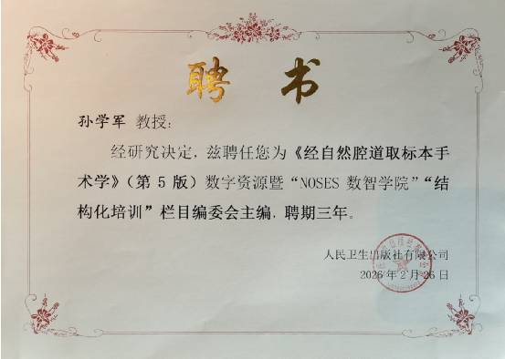 针对此次当选,孙学军教授表示:这既是一份荣誉,更是一份沉甸甸的责任。未来,普通外科将依托医院国家医学中心的强大平台,与全国同道携手,进一步深化NOSES技术研究、推广临床规范、加强人才培养,通过“数智学院”等新型平台,推动技术普及与教育革新,努力让这项‘无切口’的微创技术造福于更多患者。