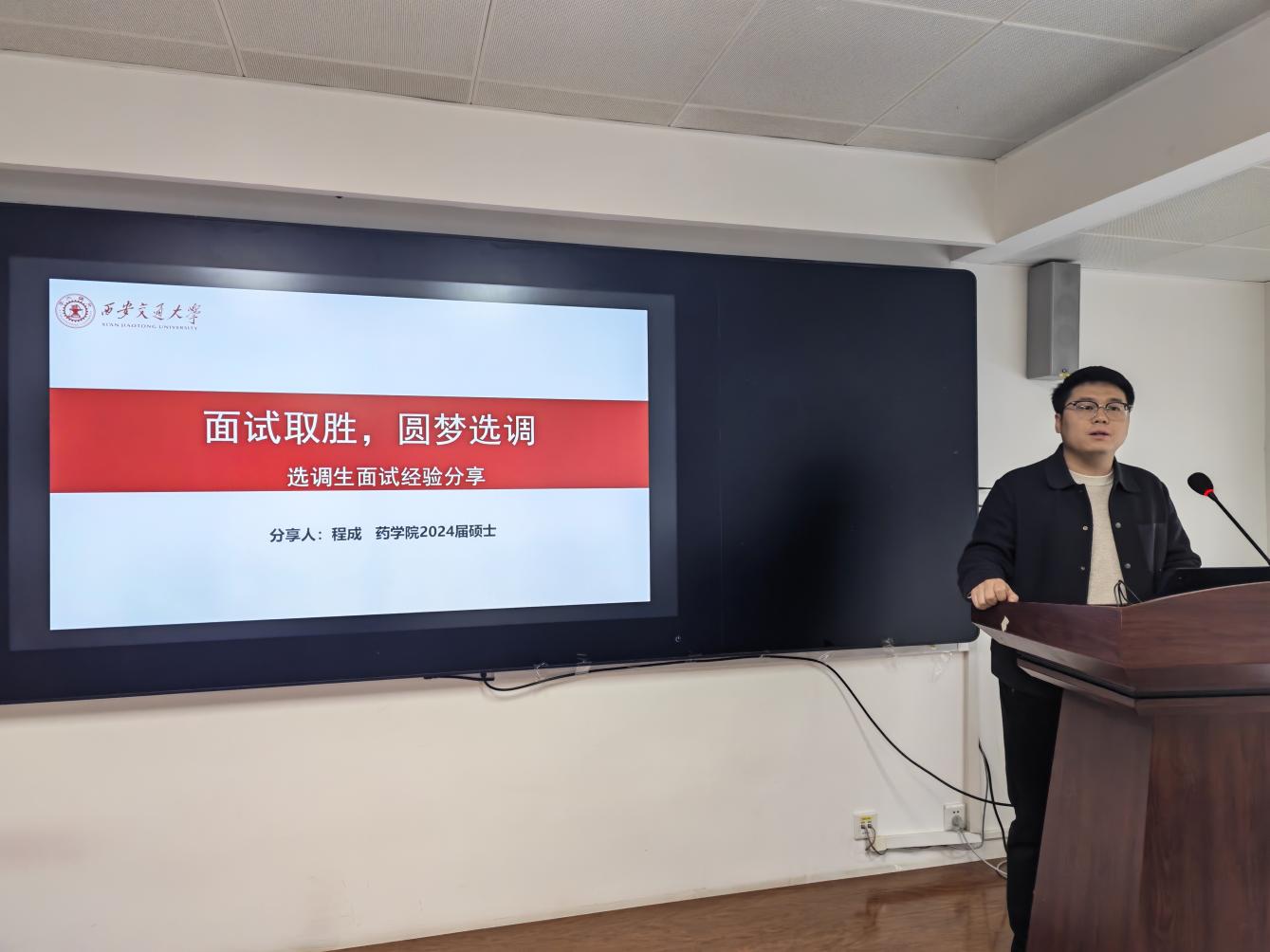 为了帮助同学们熟悉了解选调生面试流程和技巧,增强备考针对性,3月5日下午,学工办在科教楼606教室举办“就业指南针”之选调生面试技巧培训活动。活动邀请中公教育陕西研究院面试部部长余昌春作专题辅导,交大药学院2024届硕士毕业生、现就职于西安市医疗保障局的选调生程成进行朋辈分享。学工办副主任李诚杰、研究生辅导员聂康、各年级研究生、学生家长等50余人参加活动。
