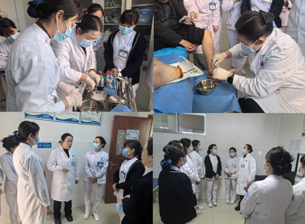 与此同时,乔丽娜老师在门诊换药室,对内分泌科糖尿病足患者进行专业会诊,现场指导创面局部处理、伤口护理、血糖管控及全身综合管理,鼓励医院积极开展伤口造口等专科护理新技术,提升慢性创面救治水平。随后,与医院护理部负责人及各科室护士长深入座谈,围绕伤口造口护理门诊建设、专科护理发展、护理质量提升、人才培养等关键问题交流研讨,为医院优化护理服务、打造特色护理专科提供可行路径与技术支撑。