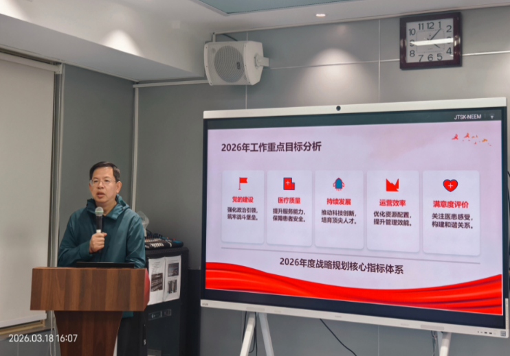 会议由袁祖贻书记主持,他首先汇报了心内科“十五五”规划,并对 2026年学科重点工作任务进行详细解读。明确了科室年度医疗运营、科研教学、人才培养等关键指标,擘画了学科发展蓝图,提出要在国家级科研项目、顶尖人才引育、核心技术突破等方面实现新提升,为科室全年工作指明了方向。