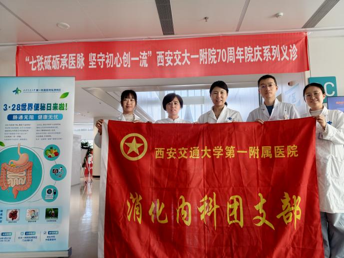 作为西安交大一附院70周年院庆系列义诊活动的一部分, 本次义诊集结消化内科、康复医学科 党员 骨干专家 团队 ,针对 慢性便秘、功能性肠病、盆底功能障碍 等常见问题,为前来咨询的市民提供免费问诊、病情评估、个性化诊疗方案制定等服务。专家们耐心倾听群众困扰,细致分析便秘成因,从 饮食调理、运动康复、排便习惯养成、规范用药 等方面给出专业建议,重点纠正 “滥用泻药”“忽视盆底肌训练”等常见认知误区。
