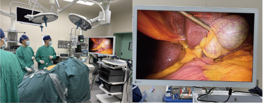 术中白纪刚教授及其团队克服常规操作习惯与反向解剖结构的冲突,打破“左右思维”定式,在腹腔镜下精准完成分离、止血、切除等一系列精细操作,全程小心翼翼避开变异血管与脏器,仅用一小时便顺利完成手术,术中出血量极少,顺利结束。