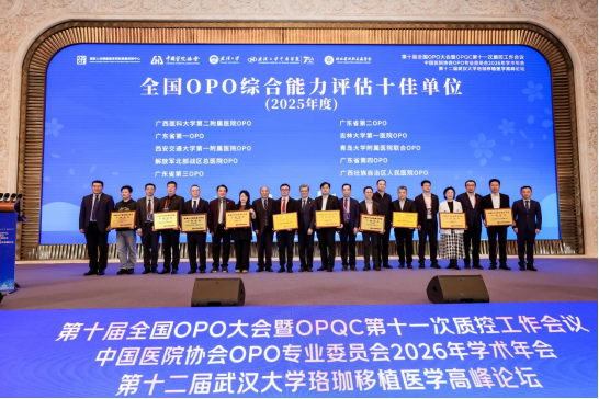 3月27日,由国家人体捐献器官获取质量控制中心、中国医院协会主办的第十届全国OPO大会暨OPQC第十一次质控工作会议、中国医院协会OPO专业委员会2026年学术年会、第十二届武汉大学珞珈移植医学高峰论坛在湖北武汉圆满落幕。会上,国家卫健委医疗应急司通报2025年人体器官捐献和移植工作数据,西安交通大学第一附属医院OPO凭借党建引领、实干担当,再次获评“2025年度全国OPO综合能力评估十佳单位”,陈国振医生代表医院上台领奖。我院OPO连续多年蝉联此项国家级荣誉,充分彰显国家主管部门对我院器官捐献与移植工作的高度肯定与权威认可。