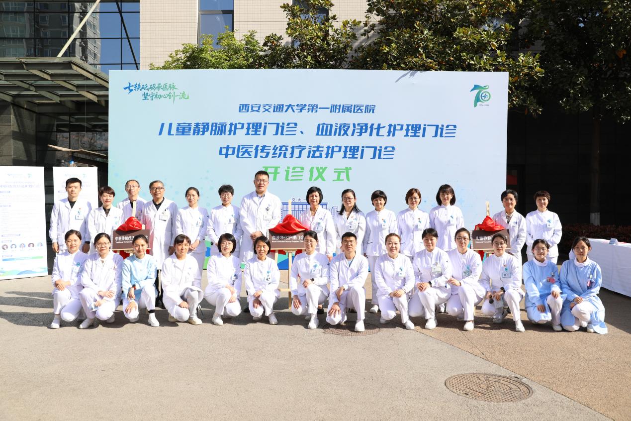 为深入贯彻 “健康中国” 战略部署,持续深化优质护理服务内涵,精准对接人民群众全生命周期健康需求,4月1日上午,西安交通大学第一附属医院儿童静脉护理门诊、中医传统疗法护理门诊、血液净化护理门诊开诊仪式在门诊南广场顺利举行。仪式由护理部干事郎澜主持。医院院长助理、医务部部长王铮,医务部门诊部主任刘庆,重症肾脏病・血液净化科主任蒋红利,儿科主任周熙惠,中医科主任孙连庆,护理部主任李洁琼及各专科护理门诊负责人、三大专科护理门诊核心医护团队齐聚现场,共同见证医院护理学科高质量发展的重要里程碑。