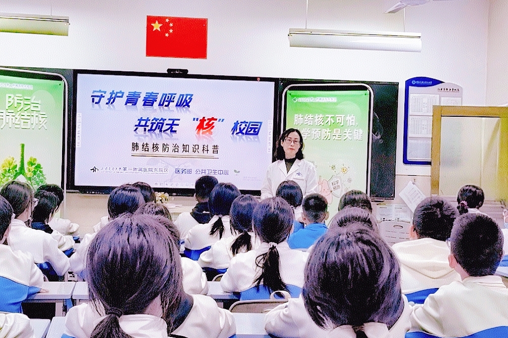 春暖花开,万物复苏。四月正是读书好时节,也是呼吸道传染病防控的关键时期。4月8日下午,东院区医务部联合公共卫生中心,走进阎良区西飞二中,以双人情景对话、专题宣讲、知识抢答等生动形式,为初一学生带来了一场别开生面的肺结核防控知识科普活动。