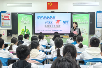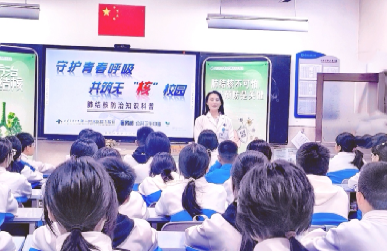 随后,东院区医务部负责人宋冰老师说到:“人间四月天,最是书香与健康不可辜负。今年恰逢我院建院70周年,本次‘守护青春呼吸、共筑无“核”校园’科普活动,正是70周年院庆院感系列主题活动中专为青少年健康设计的一站。希望通过轻松有趣的方式,将专业的知识送进校园,让同学们把防护知识记在心里、用在日常。”