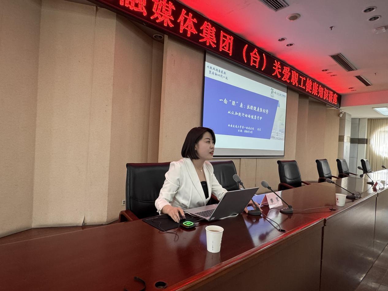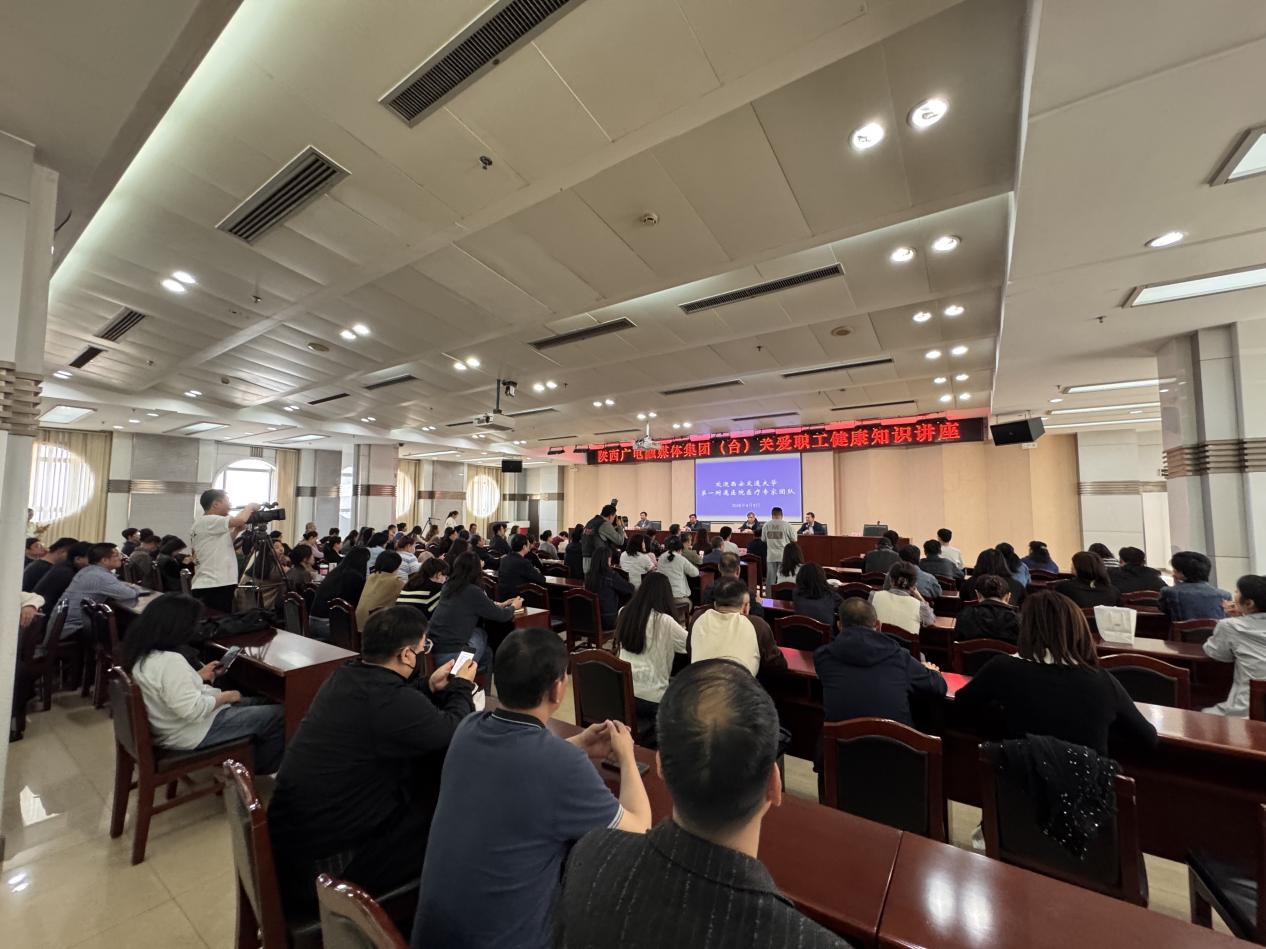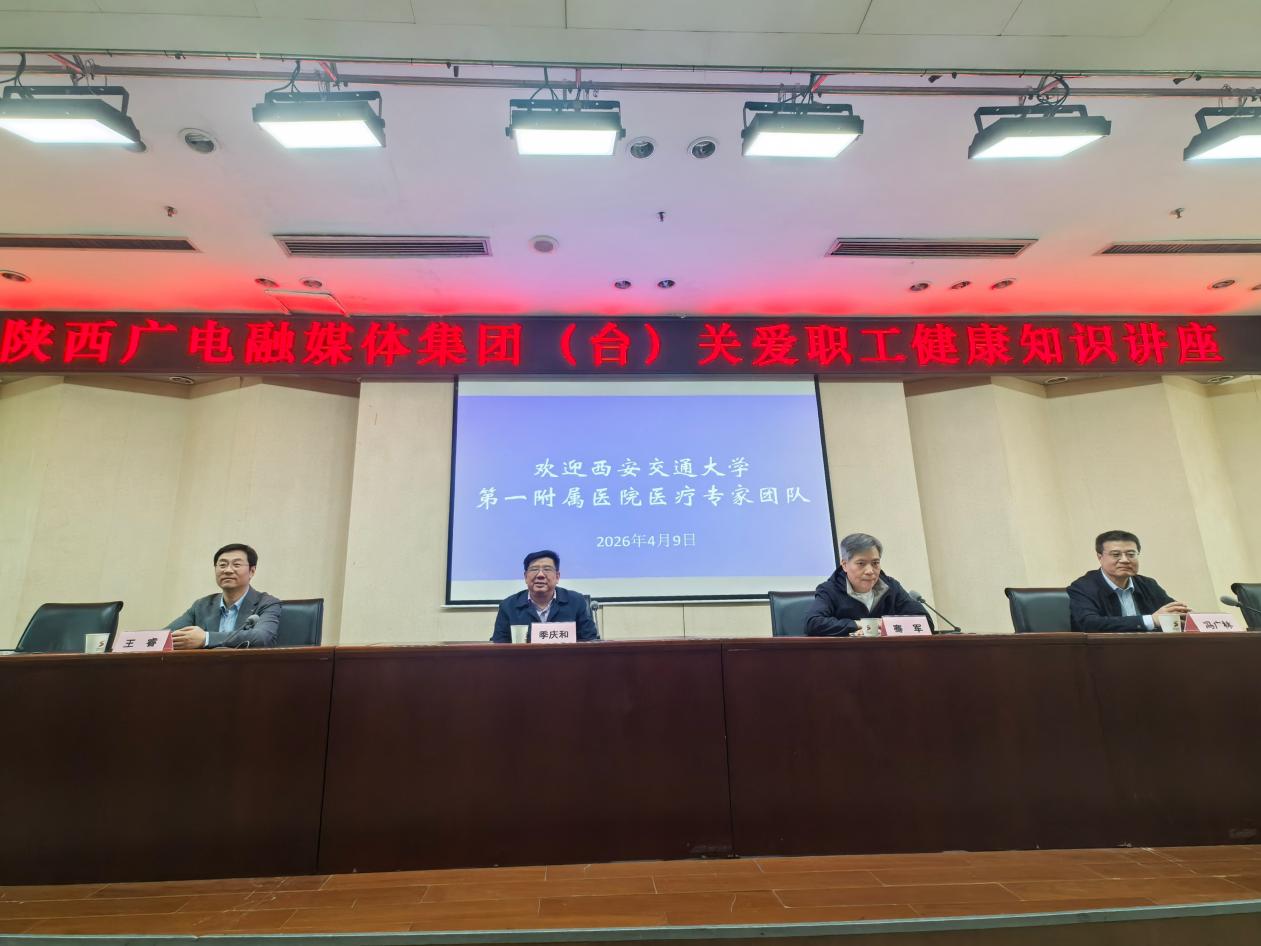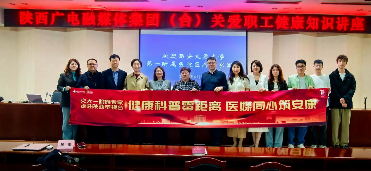 为深化医媒协作、共促健康科普惠民,4月9日下午,交大一附院专家团队走进陕西广电融媒体集团(陕西电视台),开展“名医面对面 健康进万家”职工健康知识讲座活动。活动由医院党委副书记冯广林带队,宣传部部长王睿、副部长刘炳圻,健康医学科常务副主任缑永强,医务部副部长、心内科副主任医师任洁,重症医学科副主任刘昱,消化内科副主任殷燕,肿瘤放疗科护士长李茸,健康医学科苏石等专家骨干共同参与,为现场职工带来科普讲座、急救实操、体检报告一对一解读全链条健康服务。