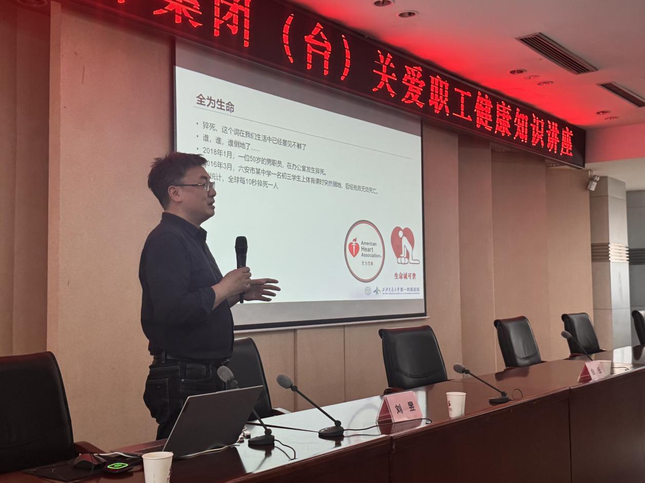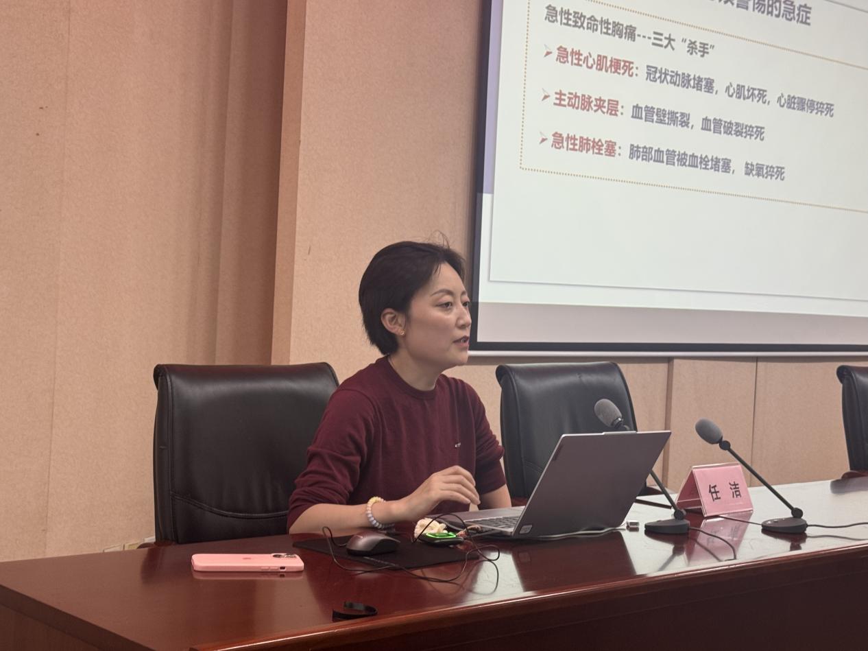 任洁教授带来急性致命性胸痛的识别和预防讲座,提升职工急症识别与自救能力。