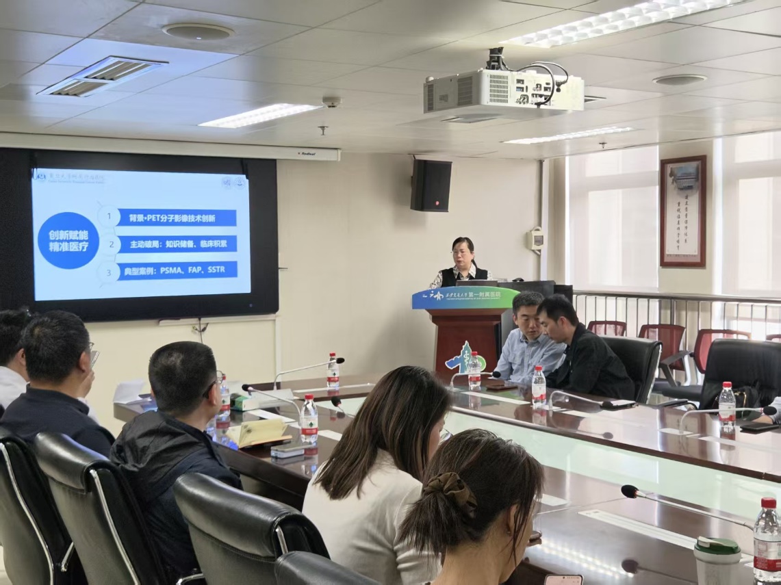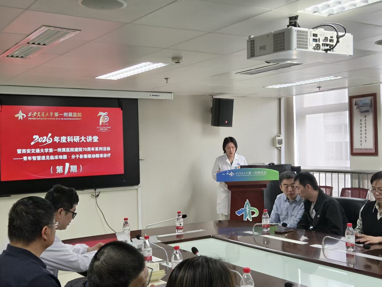 为庆祝西安交通大学第一附属医院建院 70 周年,搭建临床与科研深度融合的学术交流平台,推动分子影像技术在精准诊疗领域的创新突破与落地应用,4 月 10 日下午,由我院科学技术部主办、PET-CT 室承办的2026 年度科研大讲堂(第一期) 在科教楼 808 会议室顺利举行。本次学术活动由 PET-CT 室主任段小艺主持,院长助理兼科学技术部部长吴岳出席并致辞。