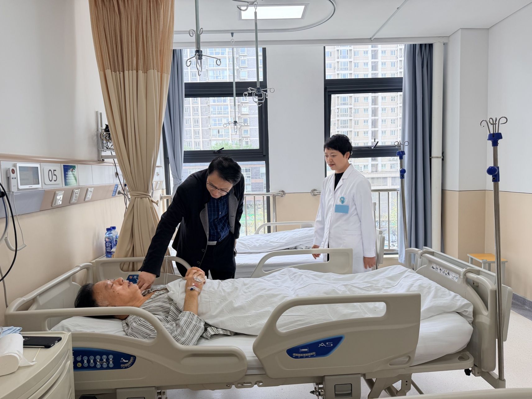 座谈结束后,在赵谦副主任、张琳娟副主任、赵欣护士长的陪同下,986医院团队先后实地走访了手术预约间、术前评估区、病房等区域,现场观摩日间病房诊疗服务全流程、区域环境布局、医疗设备配置及精细化管理措施。参观过程中,双方医护人员边走边看、边问边议,围绕日间手术病种拓展、围手术期规范管理、加速康复外科(ERAS)路径实施、PADS出院评估标准应用、医患沟通机制完善等关键内容,进行了细致交流与经验探讨。空军986医院团队对我院日间手术中心全流程闭环式安全管控体系、高效便捷的服务流程、免陪照护信息化管理给予高度评价。