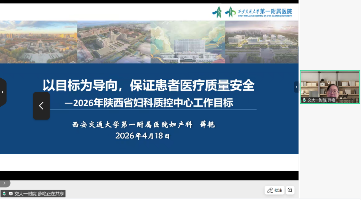 为深入贯彻落实国家妇科医疗质量控制工作要求,科学谋划2026年全省妇科质控工作,2026年4月18日,陕西省妇科医疗质量控制第一次专题培训工作会议顺利召开。本次会议围绕国家卫健委十大医疗质量改进目标和妇科学专业医疗质量提升重点专项问题展开深入研讨,聚焦盆底疾病、妇科内分泌及妇科感染性疾病质控关键要点,明确了陕西省2026年妇科医疗质量控制目标,为全省妇科诊疗规范化、精细化发展指明方向。
