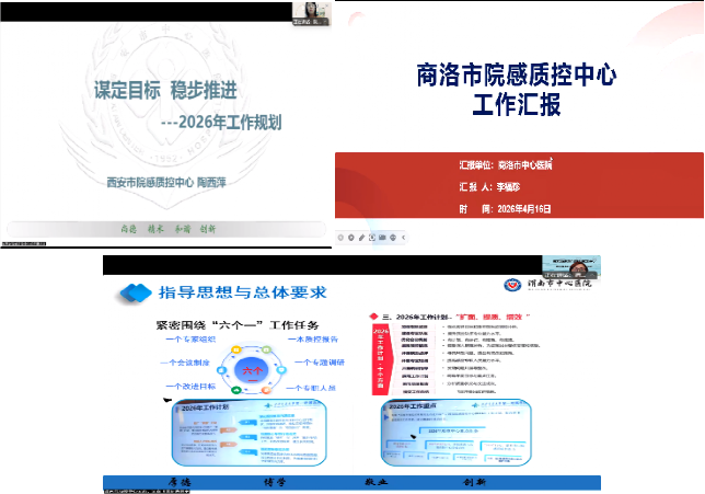 在随后的地市工作交流环节,西安市院感质控中心陶西萍主任、商洛市院感质控中心李福珍主任、渭南市院感质控中心吴燕主任依次作工作汇报。三位主任分别围绕本市2026年度院感质控工作计划安排、1-3月重点工作进展、当前面临的突出问题及针对性改进建议进行了详实分享。