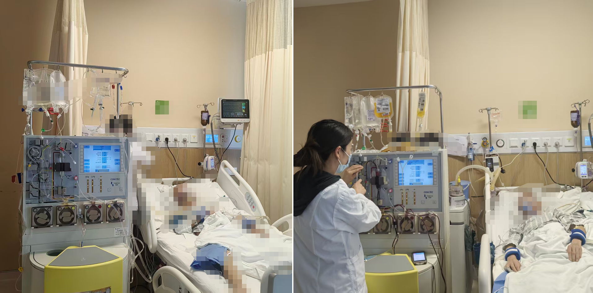 考虑到两名患者病情较重、行动不便,无法前往总院接受治疗,为最大限度减少患者转运风险、保障治疗及时性,输血科总院在接到陆港院区求助后,第一时间组建专业治疗团队,详细梳理患者病情、完善治疗方案,协调血浆置换设备,输血科崔颖主任及时联系血站协调血浆,连续两周每日前往陆港院区开展床旁诊疗服务,治疗过程中,团队成员分工明确、配合默契,严格遵循诊疗规范,精准操作每一个环节,密切监测患者的血压、心率等生命体征,及时应对治疗过程中可能出现的各类情况,确保治疗安全、有序推进。