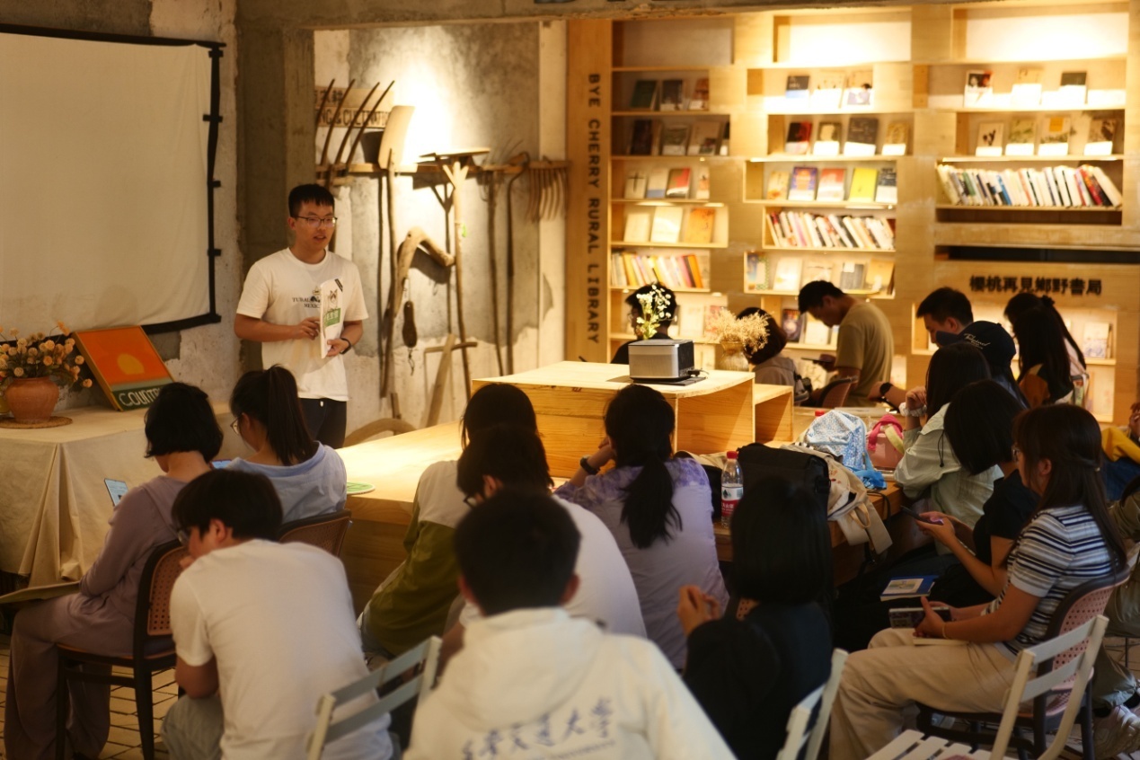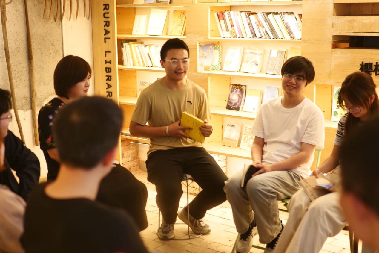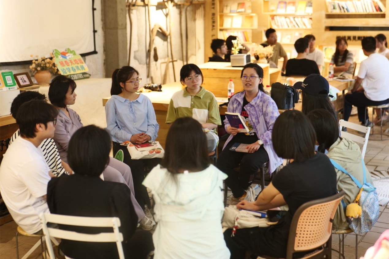 活动伊始,进入读书分享交流环节。现场气氛热烈而温馨,同学们分组围坐,参与“书香漫野·午后共读”。